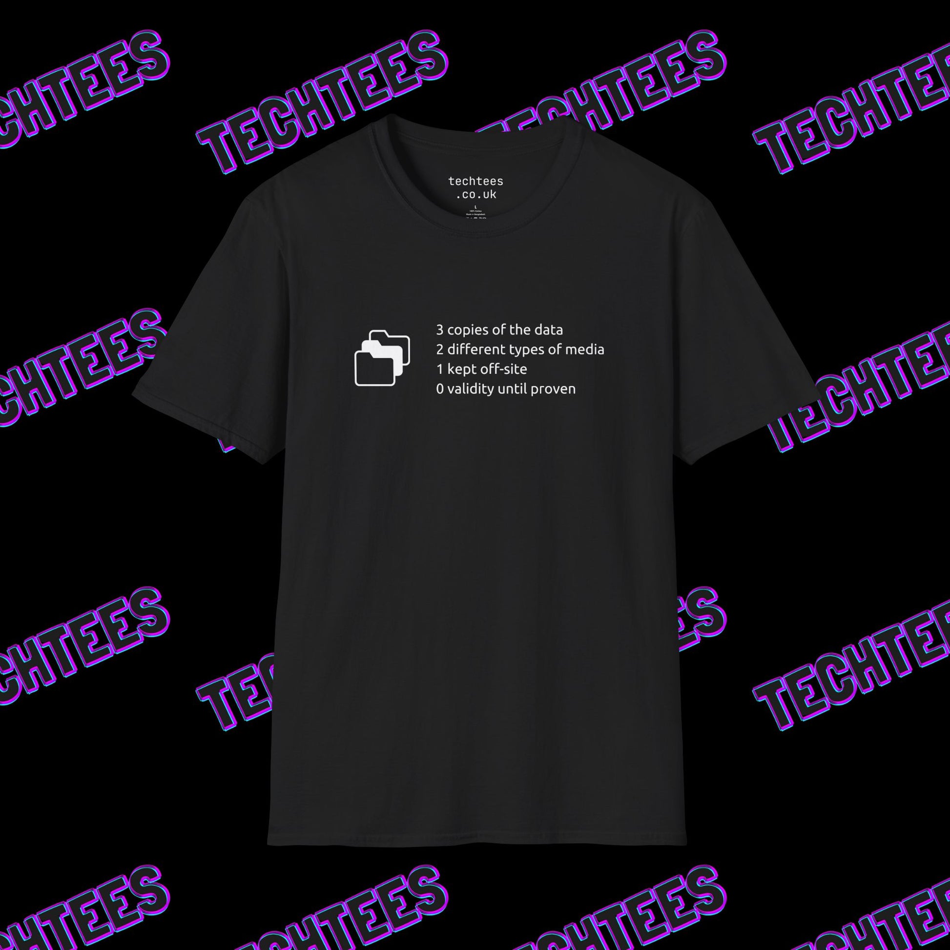 Whether you're working on a backup strategy or educating others on best practices, this t-shirt is a must-have for data protection enthusiasts. Show off your commitment to data safety—get yours today!