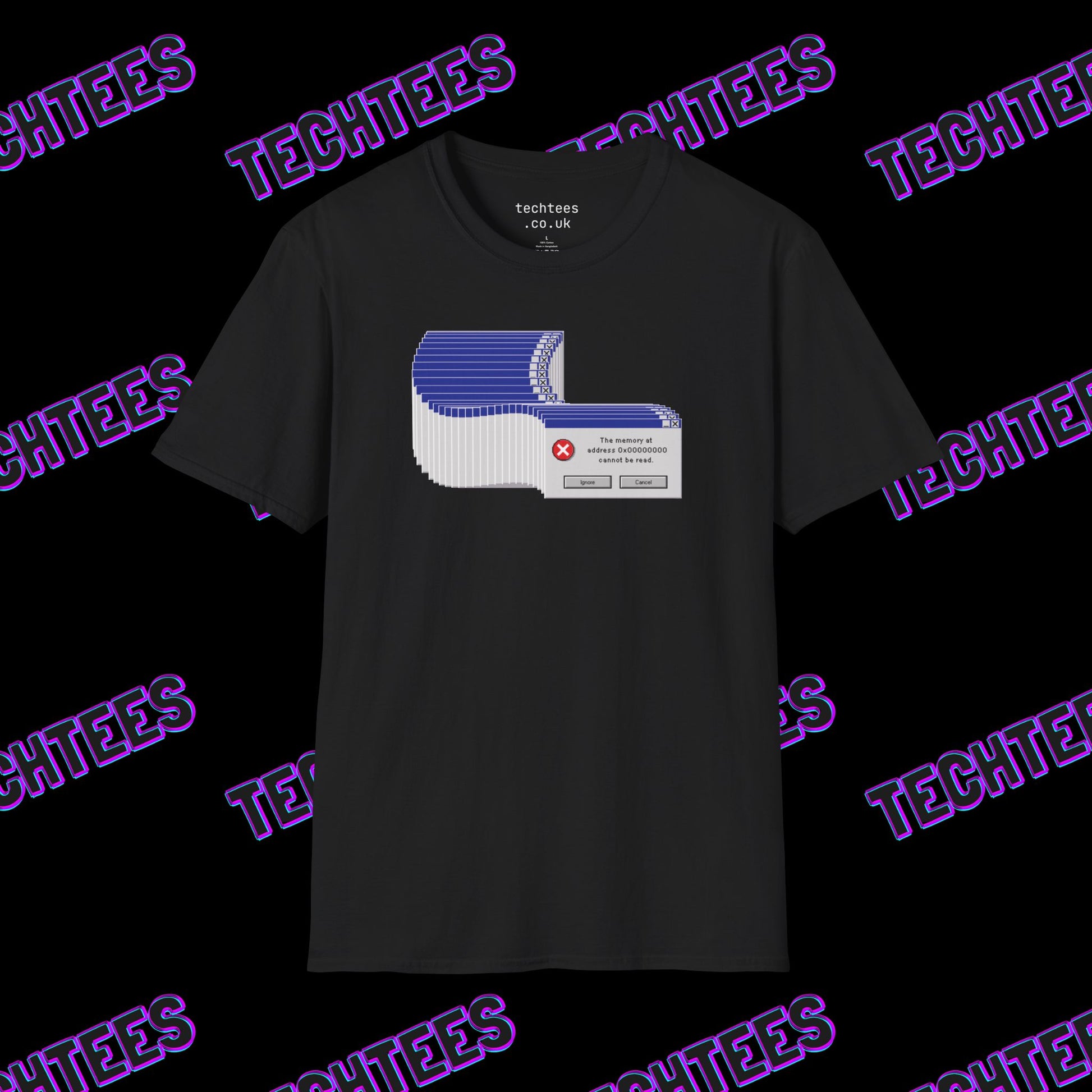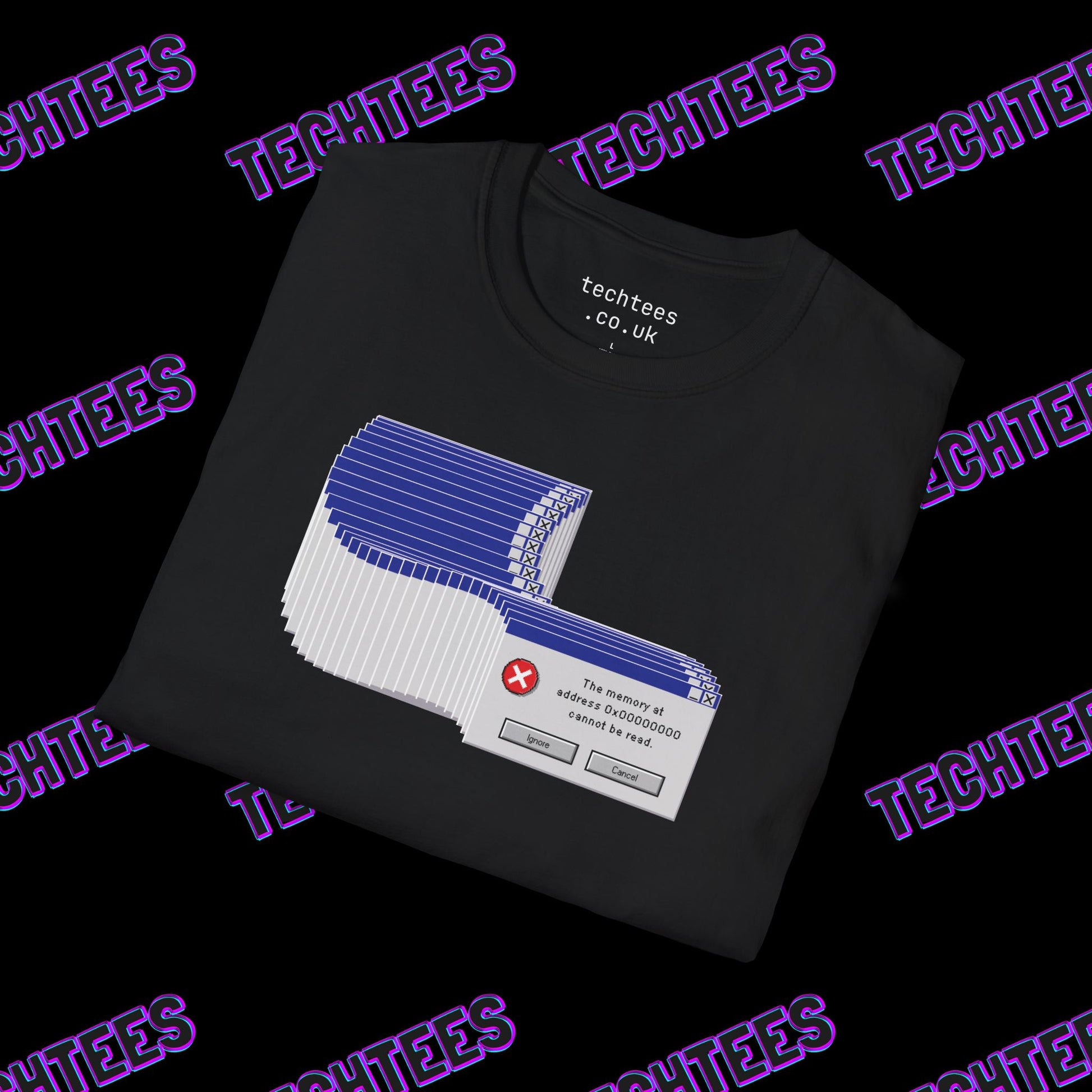 Tech nostalgia meets classic chaos with the Classic Error Message t-shirt. Featuring a never-ending stack of error windows and the familiar message "The memory cannot be read," this design is a nod to the frustrating yet iconic system glitches from early computing days. Perfect for software engineers, developers, and IT pros who have been on the front lines of debugging, this shirt lets you wear a piece of tech history with a hint of digital mayhem.