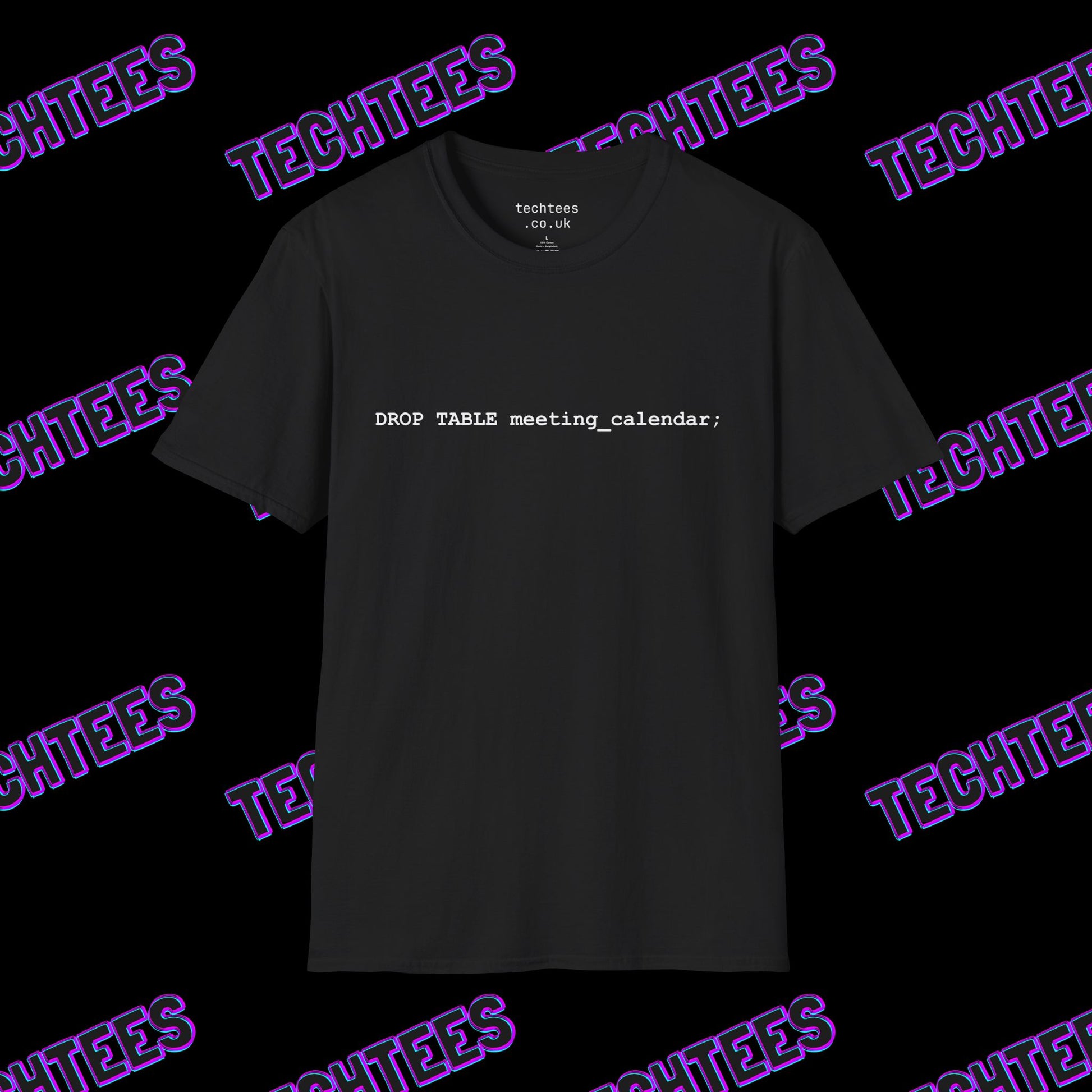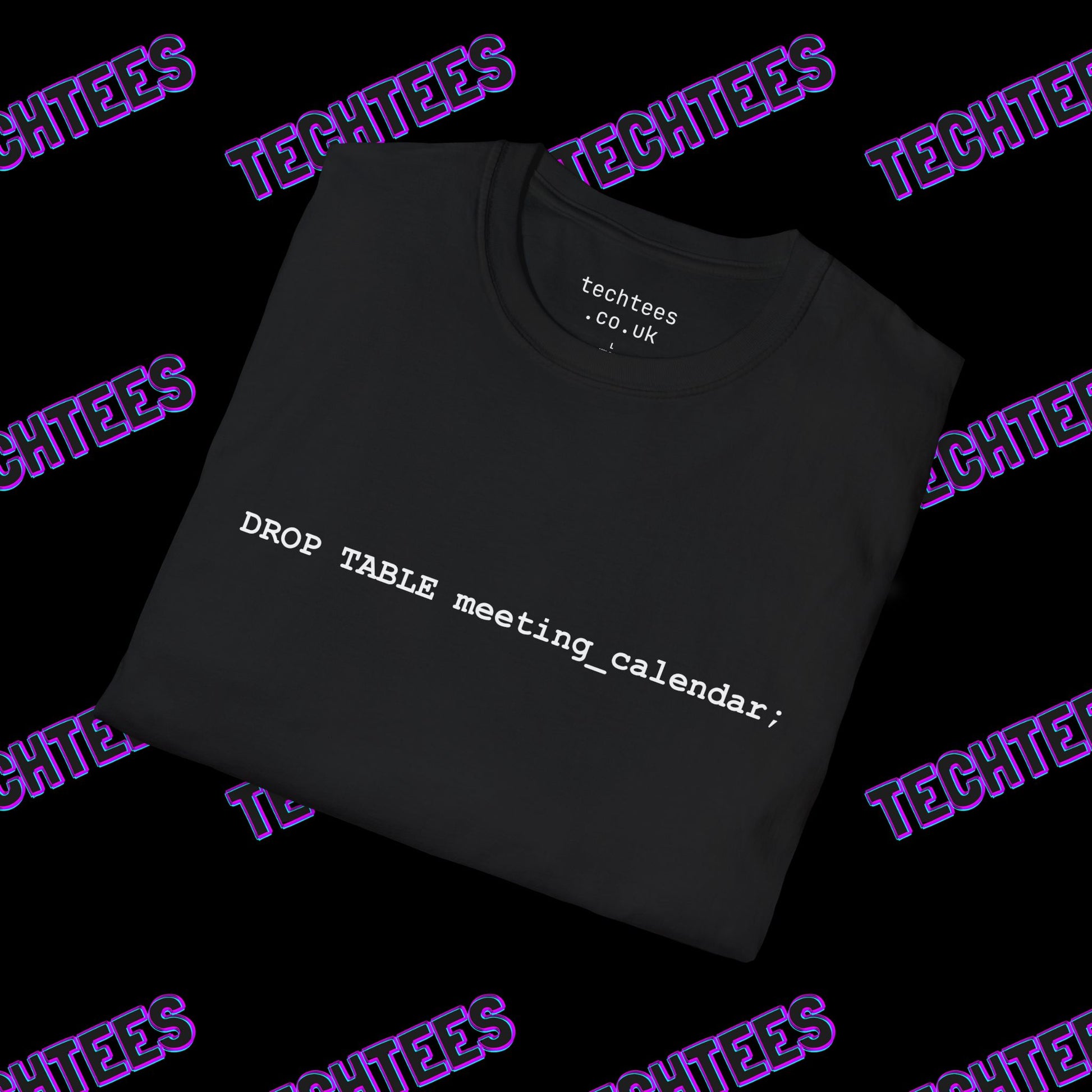 - SQL Humor: "DROP TABLE meeting_calendar;" design that any database engineer or SQL pro will appreciate.