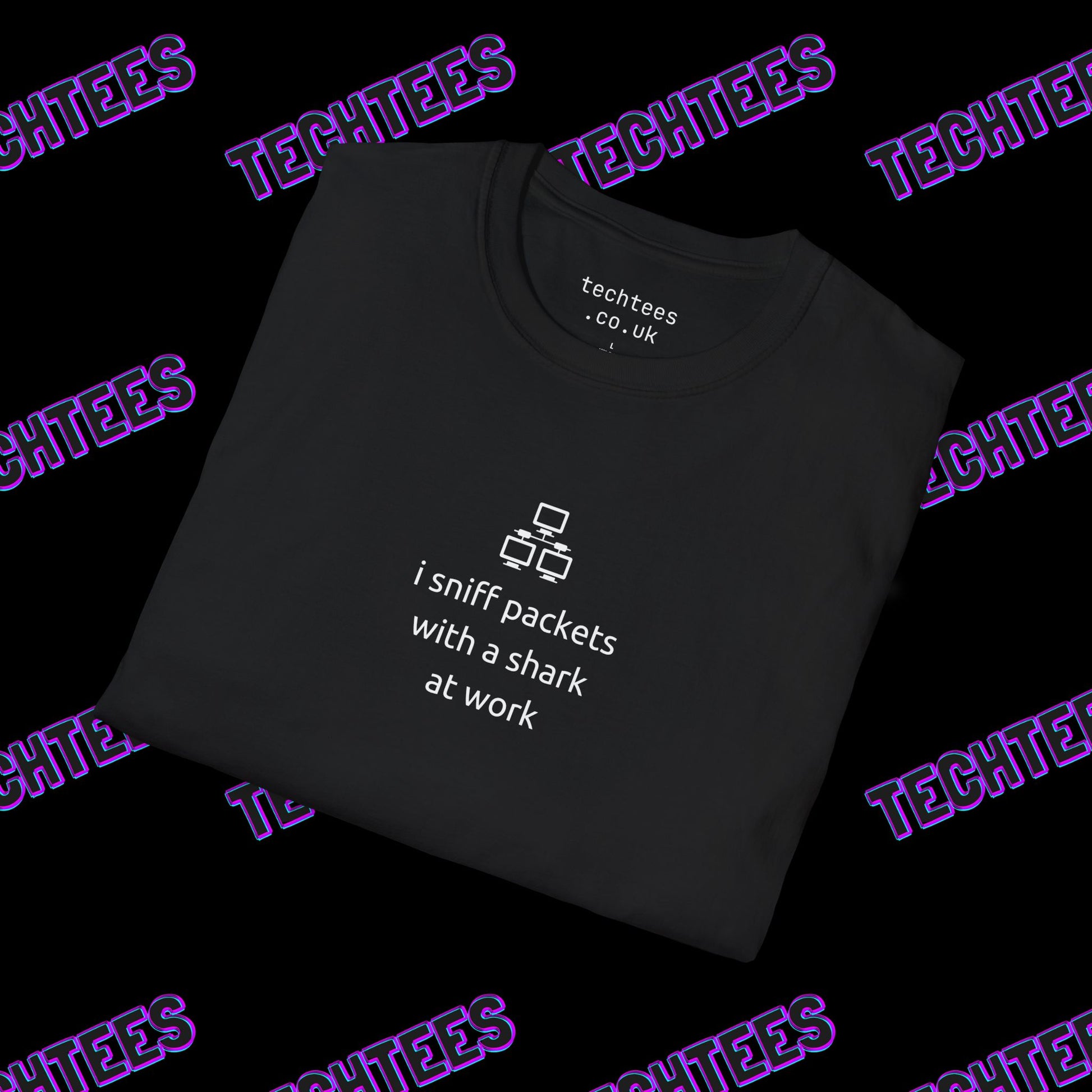 Let your network expertise shine with the "I Sniff Packets with a Shark" T-Shirt, designed for those who dive deep into packet analysis using tools like Wireshark. This fun and clever design celebrates the essential task of packet sniffing—an everyday activity for network engineers, cybersecurity specialists, and IT pros who monitor network traffic and troubleshoot with precision.