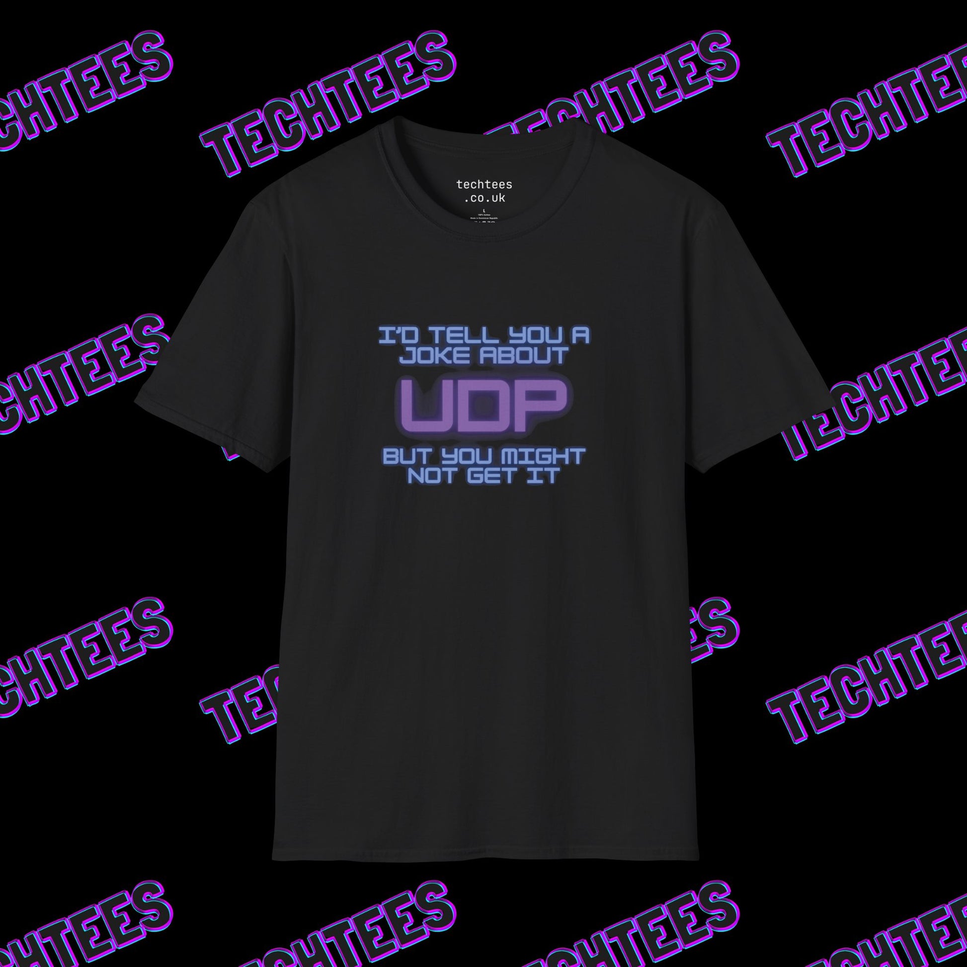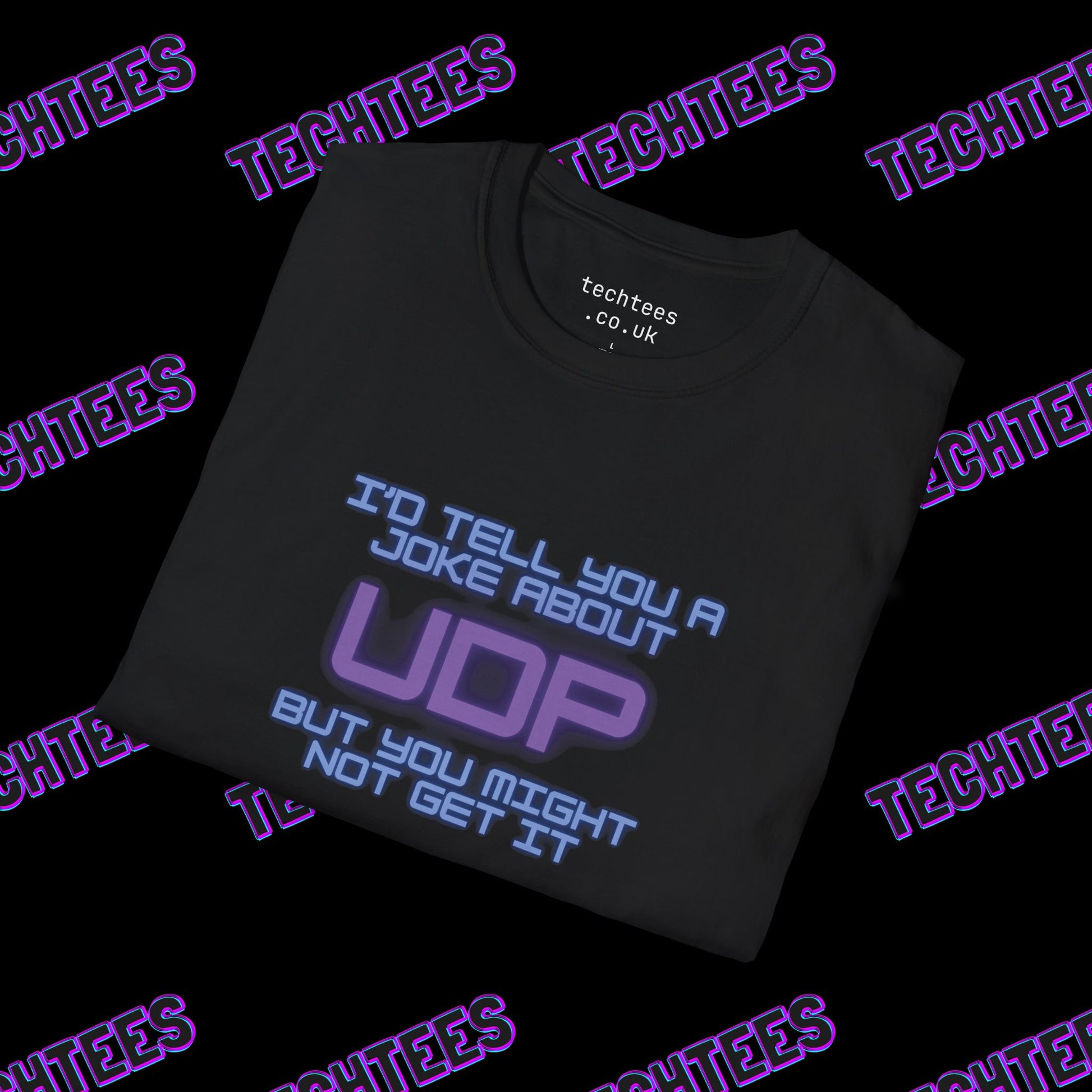 Bring some packet-based humour to your wardrobe with our "I'd Tell You a Joke About UDP But You Might Not Get It" T-Shirt. Designed for network engineers, sysadmins, and IT enthusiasts, this witty shirt celebrates the quirks of the User Datagram Protocol (UDP) in a way only techies can truly appreciate.