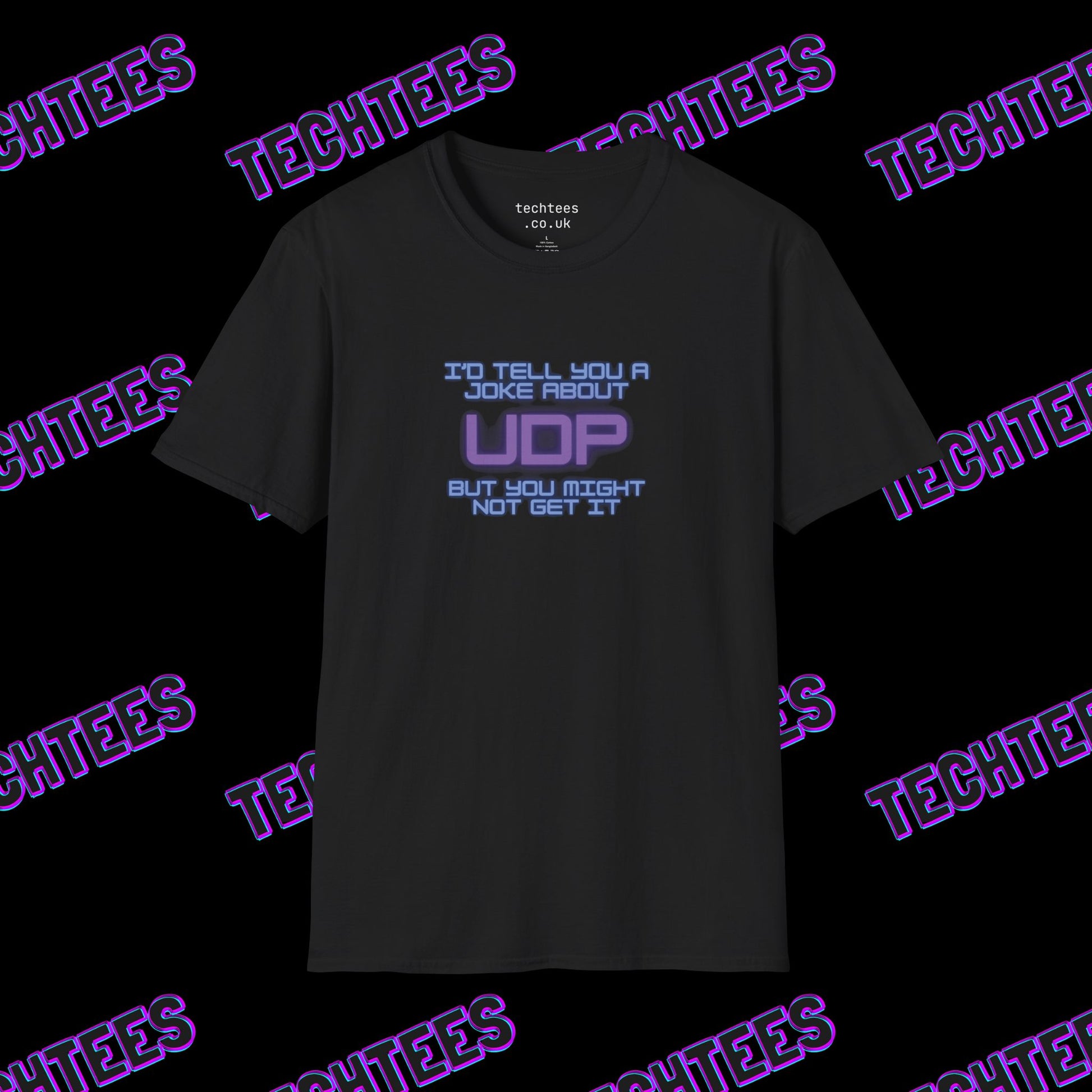 Made from premium black cotton, this relaxed-fit t-shirt combines comfort and style with a design guaranteed to get nods (or laughs) from your fellow network pros. Whether you're setting up routers, diagnosing connectivity issues, or just geeking out, this shirt delivers humor that’s as fast and lightweight as UDP itself.