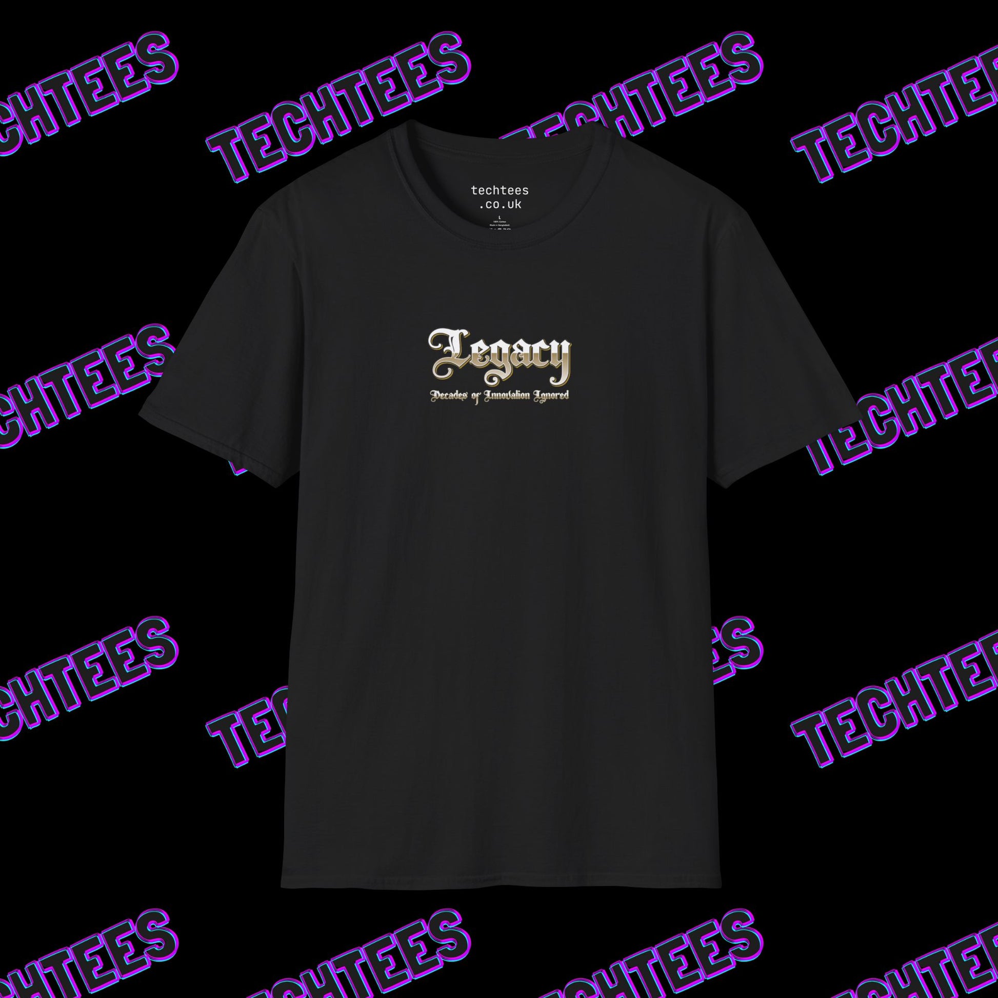 Featuring the word “Legacy” in a bold gothic font with the tongue-in-cheek phrase “Decades of Innovation Ignored” beneath it, this tee hits close to home for anyone who’s ever asked, “Why are we still running this in production?”
