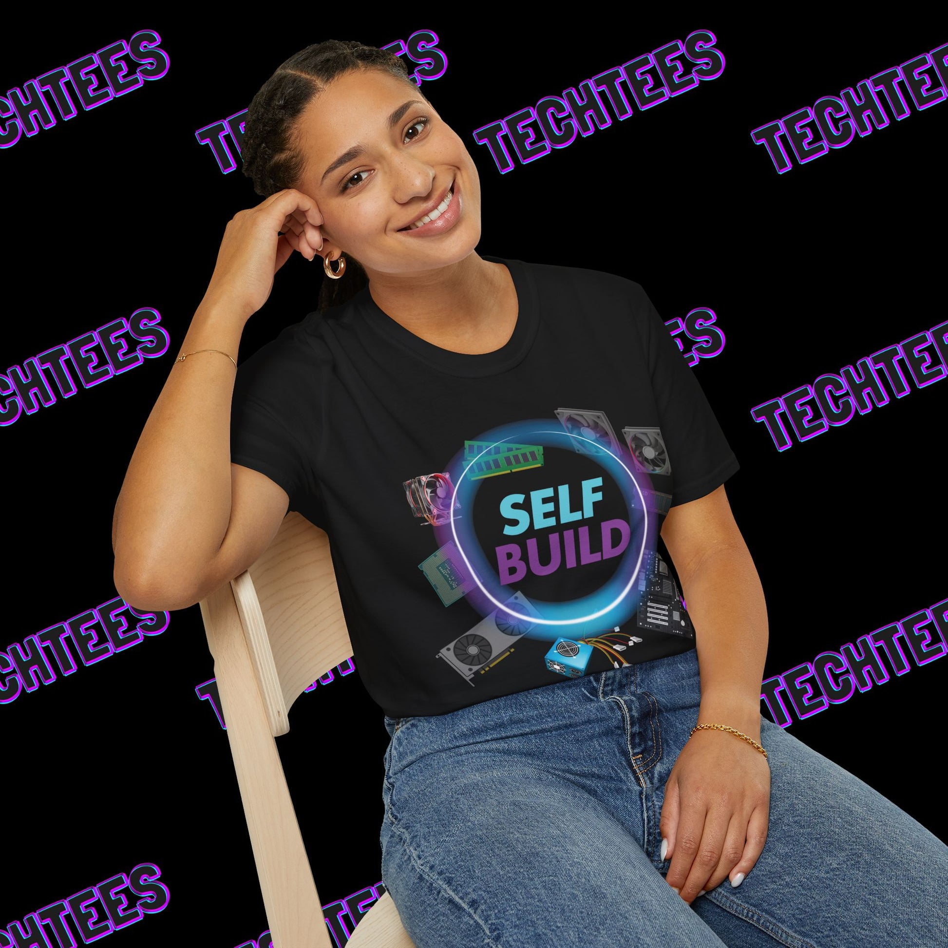 - Bold Design: Showcasing every key component for building your own gaming PC, surrounded by a glowing neon "Self Build" logo.
