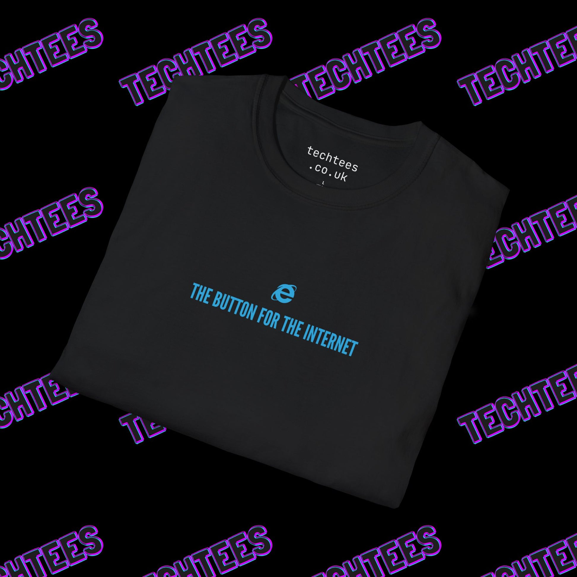 Celebrate a nostalgic piece of internet history with our "The Button for the Internet" T-Shirt. Designed for IT professionals, tech enthusiasts, and web nostalgists, this relaxed-fit black cotton t-shirt features the legendary Internet Explorer browser icon alongside the humorous phrase, “The Button for the Internet.” from the popular iconic British IT themed TV series.